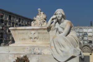 Declarado Bien Cultural de Interés Nacional, fue construido entre 1865 y 1867 y es un claro ejemplo de cementerio marinero mediterráneo. Situado en lo alto de la colina de la Piedad, acoge mausoleos realizados por destacados escultores catalanes como Venanci Vallmitjana, Josep Llimona o Frederic Marès. El poeta Salvador Espriu, enterrado aquí, lo convirtió en el mítico cementerio de Sinera.