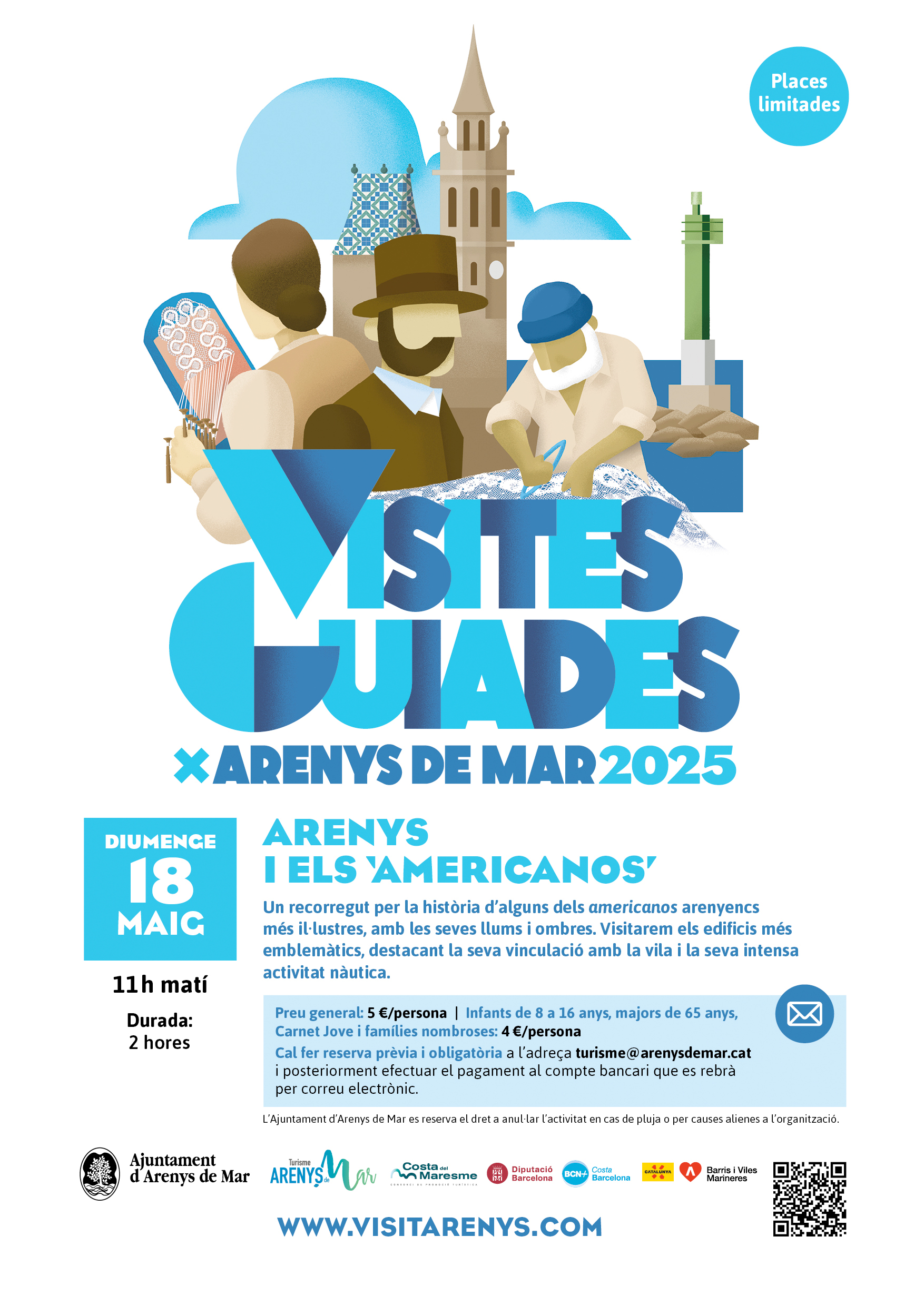 Descripció: Un recorregut per la història d’alguns dels americanos arenyencs més il·lustres, amb les seves llums i ombres. Visitarem els edificis més emblemàtics, destacant la seva vinculació amb la vila i la seva intensa activitat nàutica.